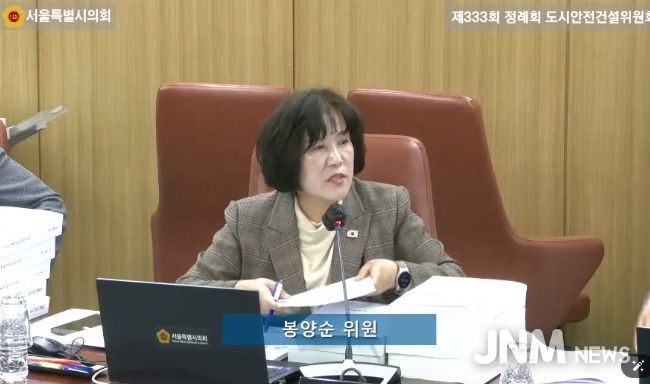 제이앤엠뉴스 | 서울특별시의회 봉양순 의원(더불어민주당, 노원3)은 12일 진행한 2025년 도시안전건설위원회 도시기반시설본부 행정사무감사에서 어울림체육센터 건립공사와 관련해 반복되는 민원과 지반침하 등 안전 문제를 집중 질의하며, 공사관리와 품질개선을 강력히 촉구했다.