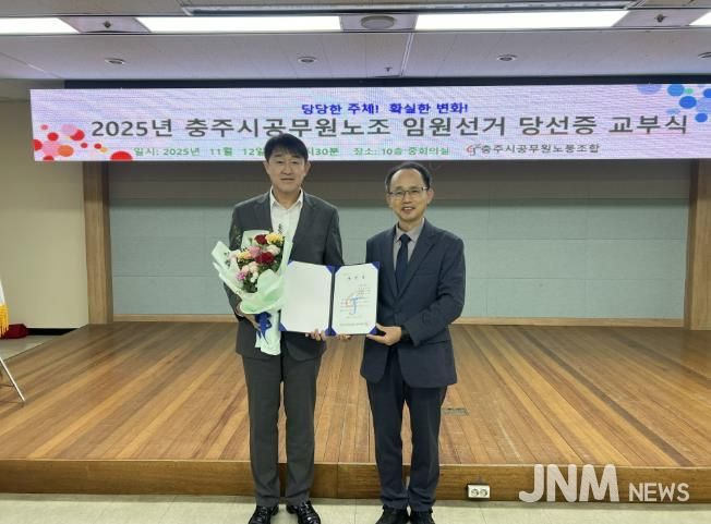 제이앤엠뉴스 | 충북 충주시공무원노동조합 제9대 위원장 선거에서 박정식 후보가 당선되며 3선 연임에 성공했다.