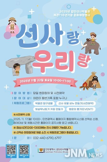 제이앤엠뉴스 | 인천광역시 검단선사박물관은 오는 22일 개관 17주년을 맞아 문화체험행사 '선사랑 우리랑'을 개최한다고 밝혔다.