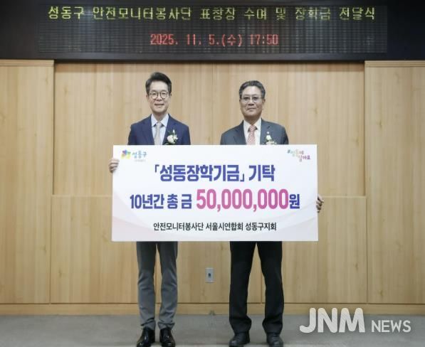 이일호 성동구 안전모니터봉사단 회장은 "우리 봉사단은 구민의 안전을 지키는 일과 더불어, 성동의 미래를 이끌어갈 학생들이 꿈을 이어가길 바라는 마음으로 장학금을 전달해 왔다"라며 "앞으로도 지역을 위한 나눔과 봉사에 더욱 힘쓰겠다"라고 말했다.