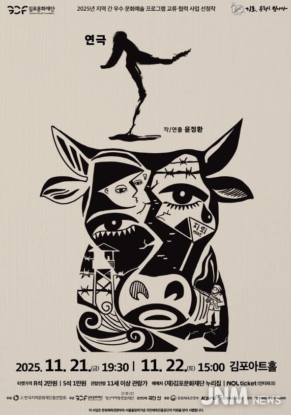제이앤엠뉴스 | (재)김포문화재단은 오는 11월 21일부터 22일까지 이틀동안 김포아트홀에서 연극 '소' 공연을 개최한다고 밝혔다.