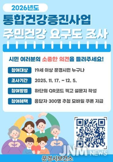 제이앤엠뉴스 | 문경시보건소(소장 박애주)는 주민들을 대상으로 17일부터 12월 5일까지 약 3주간 ‘통합건강증진사업 주민요구도 조사’를 한다.