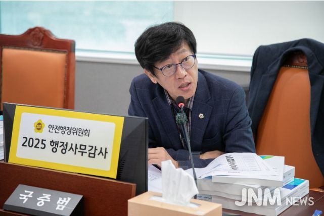 제이앤엠뉴스 | 경기도의회 안전행정위원회 국중범 의원(더불어민주당, 성남4)은 14일 경기도 안전관리실을 대상으로 한 행정사무감사에서 풍수해·지진재해보험 도비 보조금 집행률의 시·군 간 편차가 심각하다고 지적하며, 제도 실효성 제고를 위한 적극적인 대책 마련을 촉구했다.