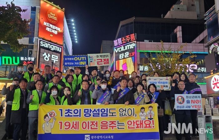 제이앤엠뉴스 | 광주시교육청은 지난 14일 상무지구 일대에서 광주광역시, 광주경찰, 서구, 한국외식업중앙회 광주지회, 광주청소년유해환경감시단 등과 함께 수능 이후 청소년 보호를 위한 현장 캠페인을 전개했다.