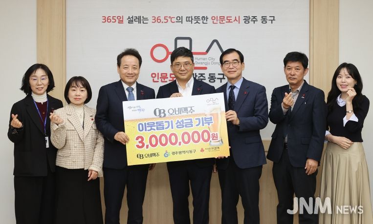 제이앤엠뉴스 | 광주 동구는 17일 구청 접견실에서 OB맥주 광주지점(지점장 김태호)의 이웃돕기 성금 3백만 원 기부금 전달식을 진행했다고 밝혔다.