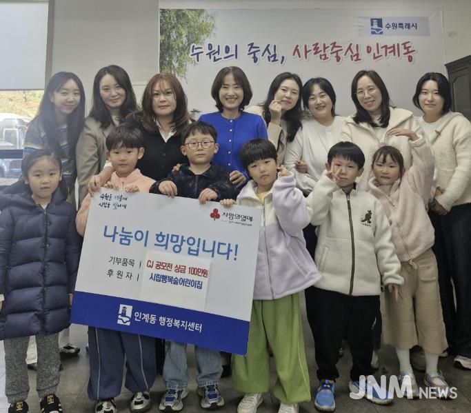 제이앤엠뉴스 | 시립행복숲어린이집은 지난 14일, 수원시 팔달구 인계동에 CJ 식습관 공모전 상금 100만원을 기부했다.