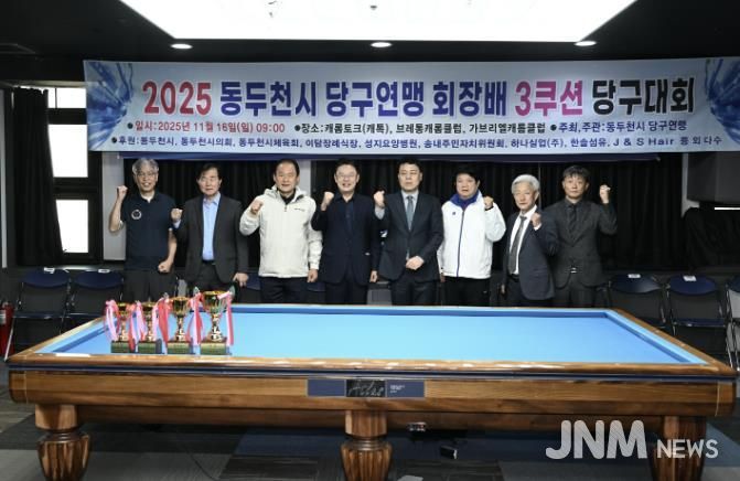 제이앤엠뉴스 | 동두천시당구연맹이 주최·주관하고 동두천시와 동두천시의회가 후원한 ‘2025 동두천시당구연맹 협회장배 3쿠션 당구대회’가 지난 11월 16일 동두천 캐롬토크클럽 당구장에서 성황리에 열렸다.