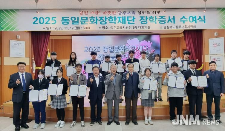 제이앤엠뉴스 | 경상북도상주교육지원청에서는 11. 17. 16시에 3층 대회의실에서 동일문화장학재단 장학증서 수여식이 개최됐다.