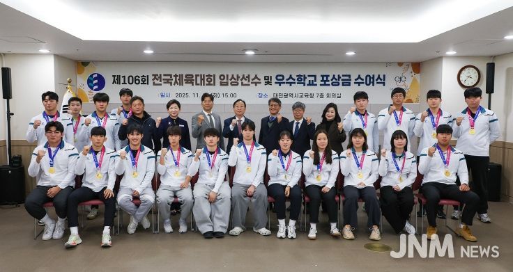 제이앤엠뉴스 | 대전시교육청은 11월 18일 오후 3시 본관 701호 회의실에서, 지난 10월 17일부터 23일까지 7일간, 부산광역시 일원에서 열린‘제106회 전국체육대회 학생선수 메달 입상자 및 우수학교 포상금 수여식’을 개최했다.