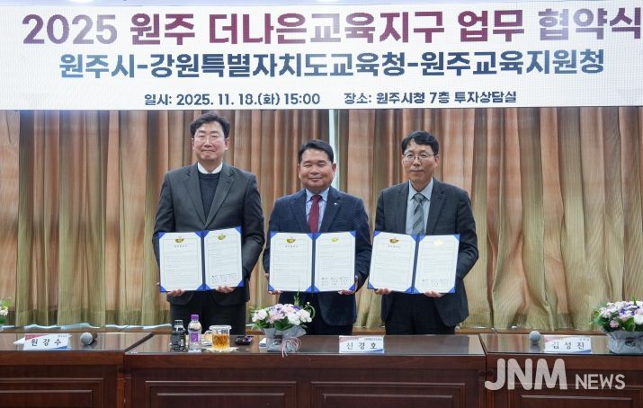 제이앤엠뉴스 | 강원특별자치도교육청은 원주시, 원주교육지원청과 11월 18일 원주시청에서 ‘원주 더나은교육지구 연장지정 업무협약’을 체결했다.