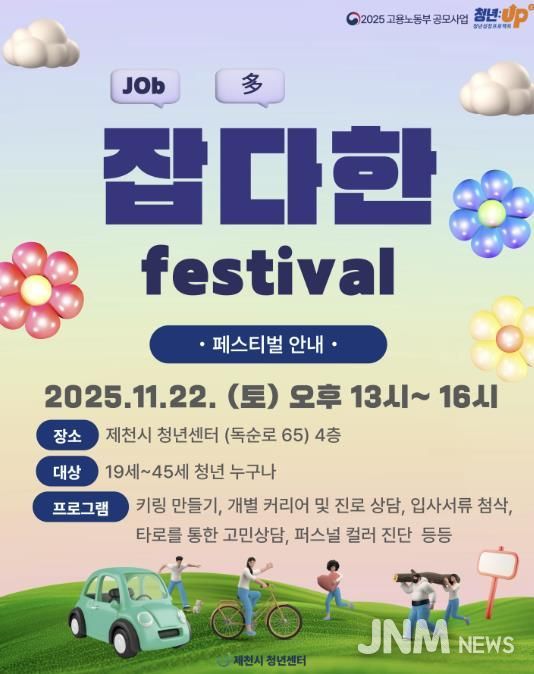 제이앤엠뉴스 | 제천시 청년센터는 취업 준비 청년을 위해 오는 11월 22일 ‘잡다(job多)한 페스티벌’을 개최한다.