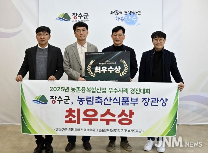 제이앤엠뉴스 | 장수군은 18일 농림축산식품부가 주관한 ‘2025년 농촌융복합산업 우수사례 경진대회’에서 ‘농촌융복합산업지구’ 분야 ‘최우수상’을 수상했다고 밝혔다.