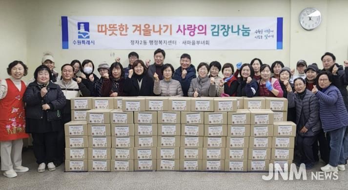 제이앤엠뉴스 | 수원시 장안구 정자2동 새마을부녀회는 지난 18일 동 행정복지센터에서 김장철을 맞아 어려운 이웃들에게 따뜻한 정을 전하기 위한 ‘사랑의 김장 나누기’ 행사를 진행했다.