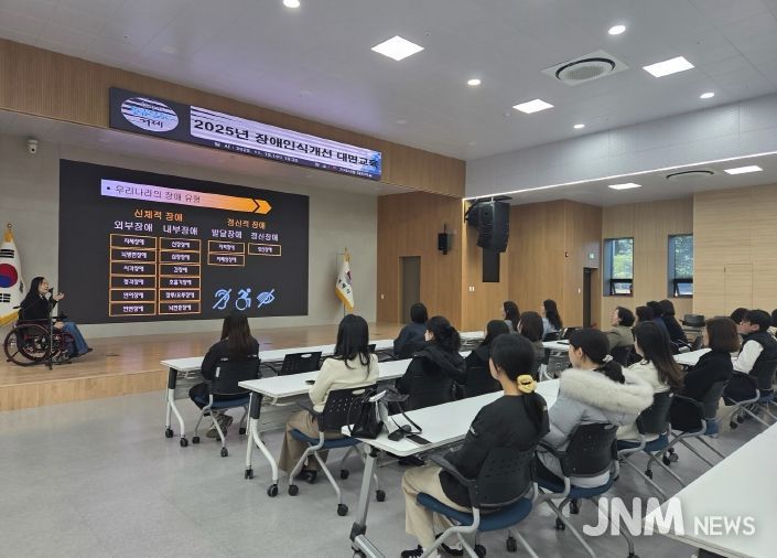제이앤엠뉴스 | 거제시는 지난 19일 시청 대회의실에서 신규공무원을 포함한 100여 명을 대상으로 ‘2025년 장애인식개선 대면교육’을 실시했다.