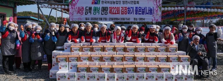 제이앤엠뉴스 | 한국여성농업인 영천시연합회는 20일 금호읍 대현사에서 ‘2025년 사랑의 김장김치 담그기 및 나눔 행사’를 진행했다.