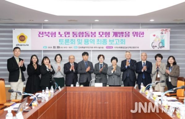 제이앤엠뉴스 | 전북특별자치도의회 지역사회 통합돌봄 정책방향 연구회(대표 국주영은 의원)는 19일 도의회 세미나실에서 ‘전북형 노인 통합돌봄 모형 개발을 위한 연구용역 최종보고회 및 토론회’를 개최했다.