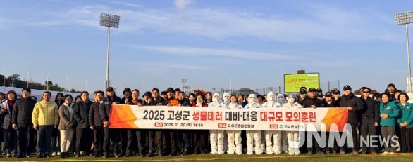 제이앤엠뉴스 | 고성군은 군민의 생명과 안전을 지키기 위해 2025년 11월 20일 고성군종합운동장에서 ‘2025년 생물테러 대응 대규모 모의훈련’을 성공적으로 실시했다고 밝혔다.
