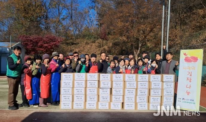 이날 김장 담그기 행사는 전날 다듬기 사전작업에 이어 이른 아침부터 시작됐으며 이번 김장 김치는 각 마을 홀몸 어르신 및 소외 계층 60여 가구에 방문해 전달할 예정이다.