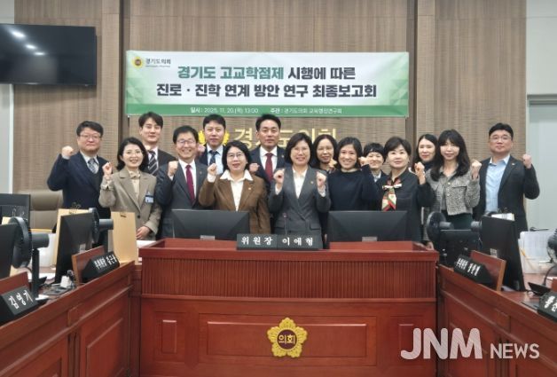 제이앤엠뉴스 | 경기도의회 교육행정위원회 소속 의원 연구단체인 ‘교육행정연구회(회장 이애형)’는 20일 교육행정위원회 회의실에서 정책연구과제인 ‘경기도 고교학점제 시행에 따른 진로·진학 연계 방안 연구’의 최종보고회를 개최했다.