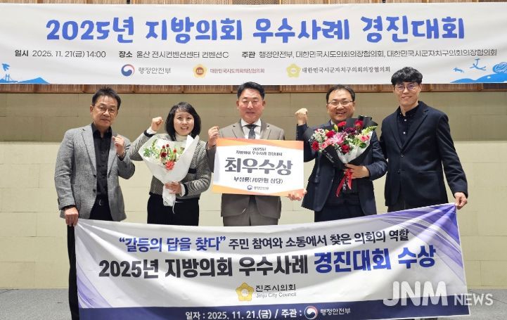 제이앤엠뉴스 | 진주시의회는 지난 21일 행정안전부가 주최한 ‘2025년 지방의회 우수사례 경진대회’에 주민참여 부문으로 참가해 최우수상을 거머쥐는 기쁨을 누렸다.