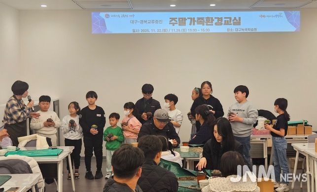 제이앤엠뉴스 | 대구시교육청은 11월 22일과 29일 양일간 대구녹색학습원에서 경북 지역 40가족을 대상으로 ‘가족주말환경교실’을 운영한다. 이번 프로그램은 2025년 대구-경북교육청 교류 증진 사업의 하나로, 학생 60명과 학부모 80명이 참여해 환경 체험 활동을 진행한다.