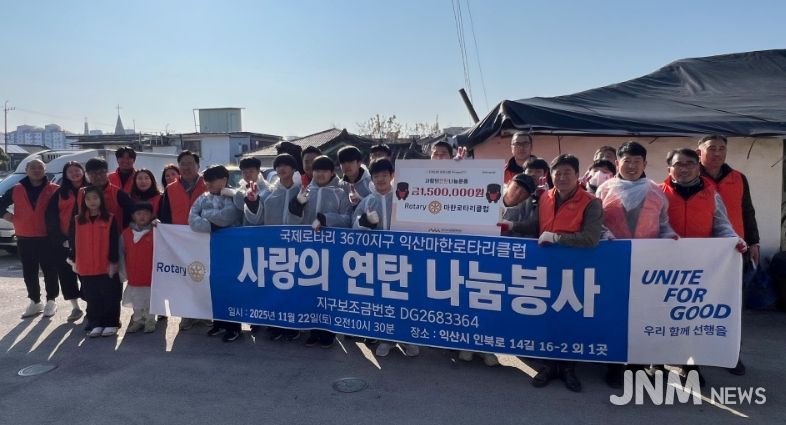제이앤엠뉴스 | 익산마한로타리클럽(회장 김판규)이 오는 22일 지역 내 저소득 취약계층 2가구를 대상으로 '사랑의 연탄 나눔 봉사'를 진행한다.