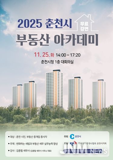 제이앤엠뉴스 | 춘천시가 초고령화 시대에 접어들며 이슈가 되고 있는 부동산 세무의 핵심을 짚어보는 ‘2025 춘천시 부동산 아카데미’를 연다.