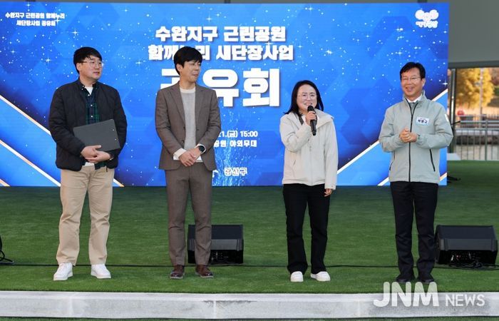 광산구는 지난 21일 수완호수공원에서 ‘수완지구 근린공원 함께누리 새 단장 사업 공유회’를 개최했다.