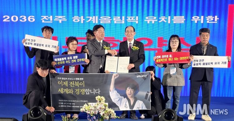 제이앤엠뉴스 | 전북특별자치도가 22일 잠실학생체육관에서 열린 전국호남향우총연합회 정기 총회 및 화합한마당에서 '전주 하계올림픽 성공 유치를 위한 업무협약'을 체결했다.