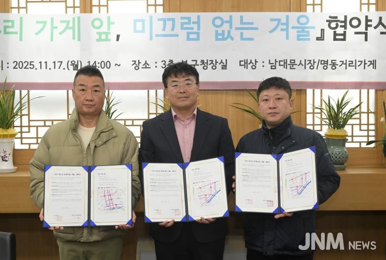 중구는 제설 협조 체제 구축과 민간 참여 촉진에도 힘쓴다. 지난 17일에는 남대문시장·명동 거리가게 상인회와 '우리 가게 앞, 미끄럼 없는 겨울' 협약을 맺고 제설 협력과 폭설에 따른 안전사고 예방에 힘을 모으기로 했다. 아울러 주민들이 보다 수월하게 '내 집 앞 제설'을 할 수 있도록 제설제 1포대 무게를 25kg에서 5~15kg으로 줄였다. 구는 현재 제설함 95개소와 '염화칼슘 보관의 집' 236개소에 제설제를 보관하고 있다.