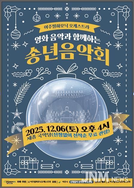 제이앤엠뉴스 | 여주 필하모닉 오케스트라는 오는 12월 6일 오후 4시, 세종국악당에서 '영화 음악과 함께하는 2025 송년음악회'라는 주제로, 연말을 맞아 여주시민과 함께 영화 속 명장면을 음악으로 되살리는 특별한 무대를 준비한다.