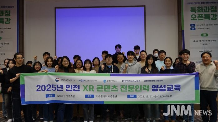 제이앤엠뉴스 | 인천테크노파크(인천TP)는 지난 21일 송도 미추홀타워에서 진행한 ‘XR 콘텐츠 전문인력 양성교육’ 특화과정 오픈특강을 성공적으로 마무리했다고 밝혔다.
