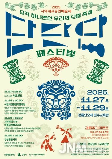 제이앤엠뉴스 | (사)강릉단오제위원회는 오는 11월 27일부터 29일까지 강릉단오제전수교육관 일원에서 ‘2025 단단단페스티벌’을 개최한다고 밝혔다. ‘단단단(端單團)’은 으뜸 단(端), 오직 하나 단(單), 우리 단(團)을 뜻하며 “오직 하나뿐인 우리의 으뜸 축제”를 의미한다.