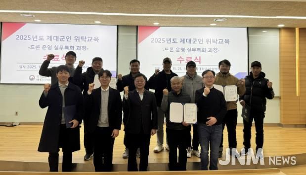 제이앤엠뉴스 | 경기북부보훈지청 제대군인지원센터는 11월 21일에 경복대학교 평생교육대학(경기 남양주)에서 9월에 시작된 ‘드론 운영 실무특화’ 위탁교육과정을 성공적으로 마무리하고, 총 10명의 교육생 전원이 교육을 수료했다고 밝혔다.