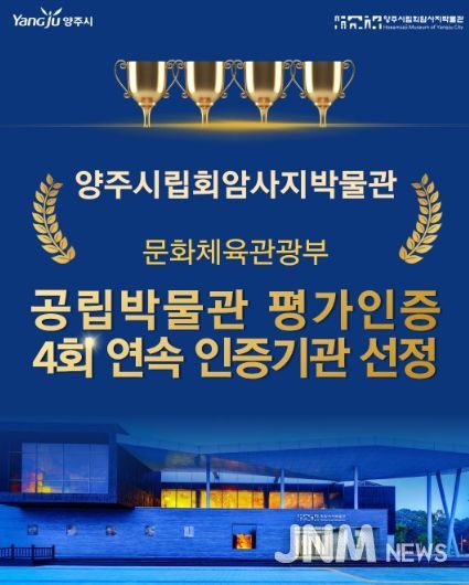 제이앤엠뉴스 | 양주시립회암사지박물관이 문화체육관광부가 시행한 ‘2025년 공립박물관 평가인증제’ 결과 4회 연속 인증기관에 선정됐다.