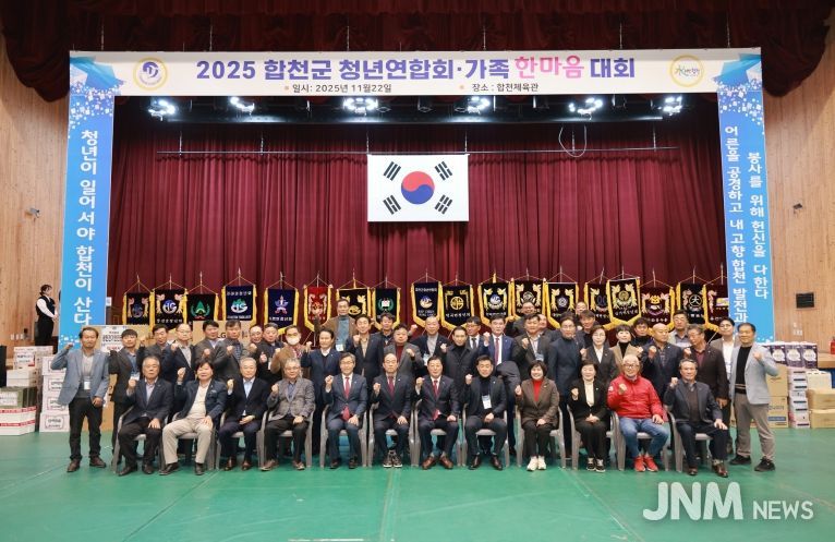 제이앤엠뉴스 | 합천군 청년연합회(회장 박성용)는 22일 오전 11시 합천체육관에서 김윤철 합천군수, 정봉훈 군의장, 장진영 도의원을 비롯한 기관·사회단체장과 회원 및 회원가족 등 300여 명이 참석한 가운데 2025년 가족 한마음대회를 개최했다.