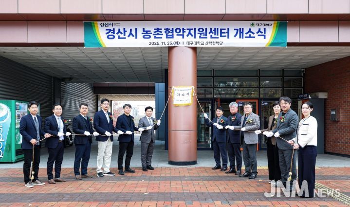 제이앤엠뉴스 | 경산시는 대구대학교와‘경산시 농촌협약지원센터 위·수탁 협약’을 체결하고, 25일 행정기관과 농촌지역 주민 간 중간 지원조직인 경산시 농촌협약지원센터를 개소했다.