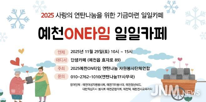제이앤엠뉴스 | 예천ON타임 연탄나눔 자원봉사연합은 오는 29일, 오전 10시부터 오후 3시까지 단샘카페(효자로 89)에서 연말 취약 계층에게 전할 연탄 기부금을 마련하기 위해 ‘일일카페’를 운영한다.