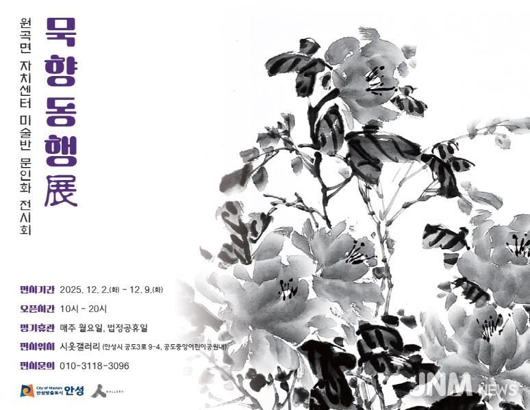 제이앤엠뉴스 | 안성시 공도 작은미술관 시옷갤러리에서는 오는 12월 2일부터 12월 9일까지 원곡면 자치센터 미술반의 문인화 전시회 ‘묵향동행展’을 개최한다.