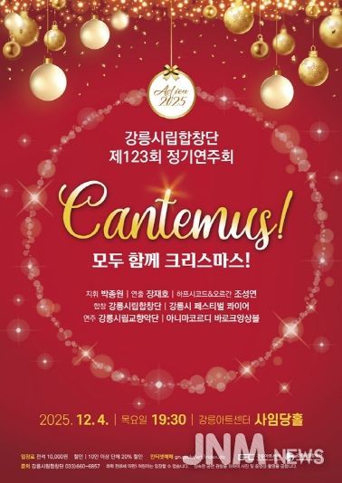 제이앤엠뉴스 | 강릉시가 다채로운 공연과 전시를 마련해 시민과 관광객들에게 따뜻하고 풍성한 연말정취를 선사한다. 세계적인 현대미술 작가 캐서린 번하드 특별전과 국내 작가 콰야의 전시를 비롯해 강릉시립합창단의 제123회 정기연주회 및 기획공연, 초당작은도서관 크리스마스 이벤트 등으로 문화와 겨울 바다를 동시에 즐길 수 있는 강릉만의 특별한 연말 분위기를 만들 것으로 기대된다.
