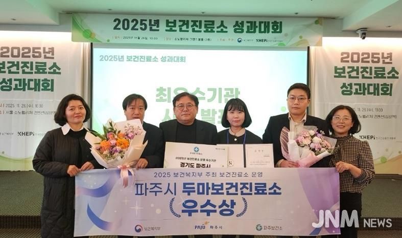 제이앤엠뉴스 | 파주시는 지난 26일 보건복지부가 주최한 녩년 보건진료소 운영 성과대회’에서 두마보건진료소가 건강 증진 사업 분야 우수기관으로 선정됐다고 밝혔다. 이는 작년 어유지보건진료소의 수상에 이어 2년 연속 우수상이라는 값진 성과이다.