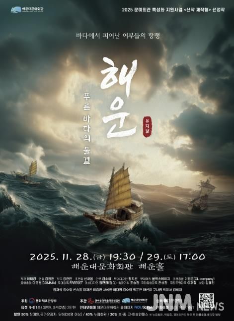 제이앤엠뉴스 | 해운대문화회관은 28일과 29일 창작뮤지컬 ‘해운(海雲):푸른바다의 물결’을 해운홀 무대에 올린다.