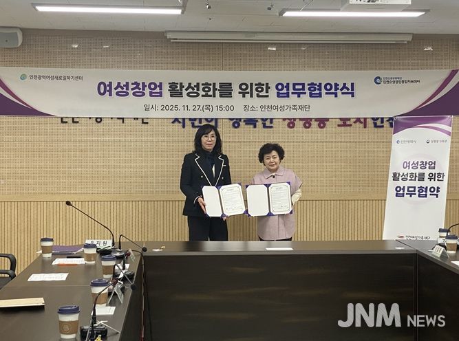 제이앤엠뉴스 | 인천신용보증재단 인천소상공인종합지원센터와 인천여성가족재단 인천광역여성새로일하기센터는 '여성 창업 활성화를 위한 업무협약'을 체결했다고 27일 밝혔다.