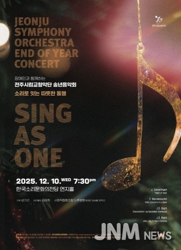 노은영 전주시 문화체육관광국장은 “이번 공연은 연말 감성을 담은 음악 속에서 사회적 포용의 가치를 공유하는 뜻깊은 무대가 될 것”이라며 “시민들이 함께 참여해 예술이 전하는 따뜻한 메시지를 나누길 바란다”고 말했다.