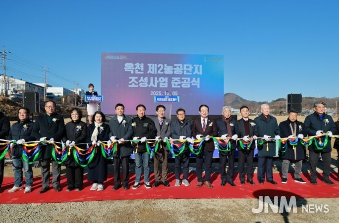 제이앤엠뉴스 | 옥천군이 5일 산업입지 수요 대응 및 지역경제 활성화를 위한 ‘옥천 제2농공단지 조성사업’ 준공식을 옥천읍 동안리 농공단지 일원에서 개최했다. 이날 준공식에는 경과보고, 유공자표창, 기념사, 축사, 테이프 커팅 순으로 진행됐으며, 황규철 옥천군수 등 내·외빈을 포함하여 40여 명이 참석했다.
