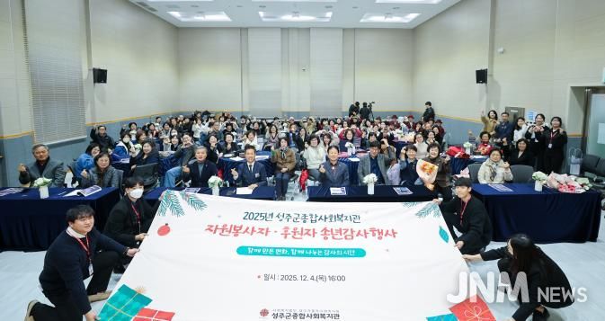 제이앤엠뉴스 | 성주군종합사회복지관에서는 12월 4일, 한 해 동안 지역사회 복지 향상에 헌신한 이들에게 감사 인사를 전하는'2025년 자원봉사자 및 후원자 송년감사행사' 를 개최했다.