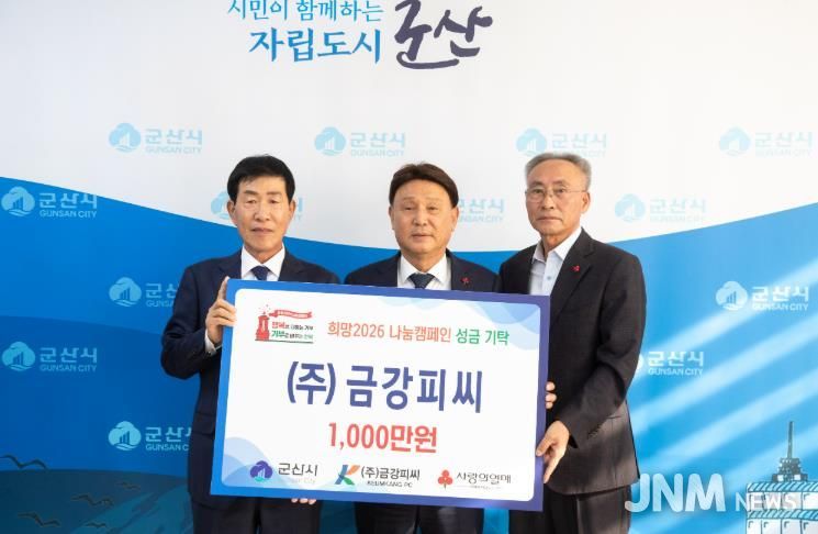 제이앤엠뉴스 | 군산시는 ㈜금강피씨가 5일 ‘희망2026 나눔캠페인’에 동참하며 어려운 이웃들을 위해 성금 1,000만 원을 전달했다고 밝혔다.