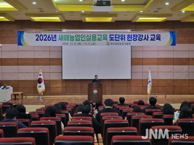 제이앤엠뉴스 | 경상남도농업기술원은 12월 4일부터 5일까지 이틀간 미래농업교육관에서 도‧시군 농촌진흥공무원 100여 명을 대상으로 ‘2026 새해농업인실용교육 도단위 현장강사 교육’을 실시했다고 밝혔다.