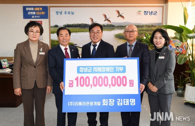 제이앤엠뉴스 | 창녕군 출신의‘기부 천사’(주)리베라관광개발 김태명 회장이 올해도 변함없이 어려운 장애인을 위해 써달라며 5일 성낙인 창녕군수를 찾아 1억 원을 기탁했다.