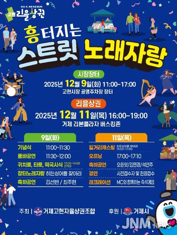 오는 12월 9일과 11일, 고현시장 공영주차장 장터와 리을상권 리본플라자 버스킹존에서 특별 연말행사 ‘흥터지는 스트릿 노래자랑’이 개최된다.